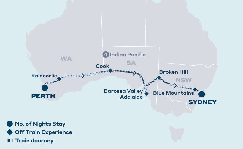 • 4 days aboard the Indian Pacific from Sydney to Perth