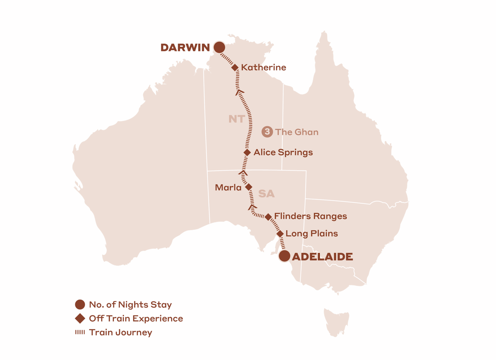 A legendary train. An unforgettable Australian adventure. Now extended in 2027 to four incredible days exploring Australia’s Red Centre by train. Travel aboard The Ghan from Adelaide to Darwin on this all-inclusive journey through the heart of the country.